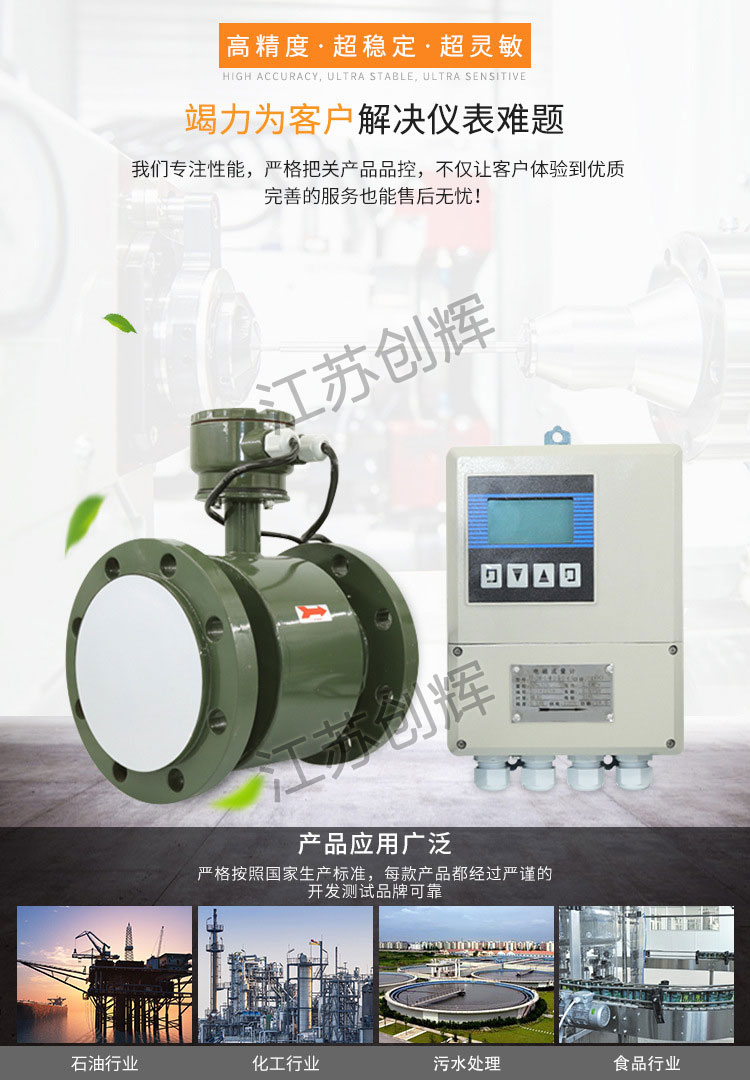 CH-LEW污水電磁流量計(jì)由傳感器和轉(zhuǎn)換器兩部分構(gòu)成。它是基于法拉第電磁感應(yīng)定律工作日的用來測(cè)量導(dǎo)電率大于5μS/cm導(dǎo)電液體的體積流量,是一種測(cè)量導(dǎo)電介質(zhì)體積流量的感應(yīng)式儀表。除可測(cè)量一般導(dǎo)電液體的體積流量外,還可用于測(cè)量強(qiáng)酸強(qiáng)堿等強(qiáng)腐蝕液體和泥漿、礦漿、紙漿等均勻的液固兩相懸浮液體的體積流量。**應(yīng)用于石油、化工、冶金、輕紡、造紙、環(huán)保、食品等工業(yè)部門及市政管理,水利建設(shè)、河流疏浚等領(lǐng)域的流量計(jì)量 柴油、潤(rùn)滑油、重油等無雜質(zhì)油性液體的高精度測(cè)量。