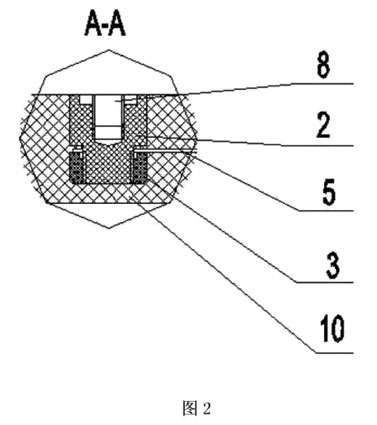 壁固定在一起,耐高溫導線7的一端與焊片9連接,耐高溫導線7的另一端穿過電磁流量計導管1上設有的絕緣線螺栓6與接線盒內設有的報警電路連接,在電磁流量計導管1的內壁上設有一層樹脂膠10,傳感器封裝在樹脂膠10內。