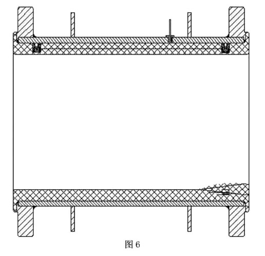 ⑦、將倒入聚氨酯樹脂膠的電磁流量計導管放入110℃的硫化罐中進行硫化,10小時后,撤掉襯膠模具繼續硫化24小時后完成襯膠。