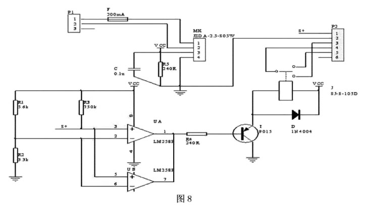 傳感器是用80.5mm厚304不銹鋼板制成的網狀傳感器。報警電路是由比較器、繼電器組成,采用繼電器輸出。耐高溫導線為AF-200聚全氟乙丙烯絕緣電纜。