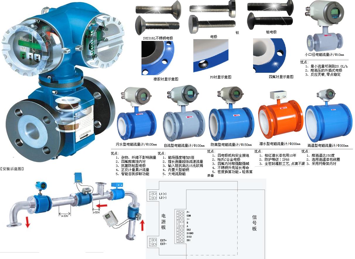 電磁流量計的測量通道是一段無阻流檢測件的光滑直管,因不易阻塞適用于測量含有固體顆粒或纖維的液固二相流體,如紙漿、煤水漿、礦漿、泥漿和污水等。不產(chǎn)生因檢測流量所形成的壓力損失,儀表的阻力僅是同一長度管道的沿程阻力,節(jié)能效果顯著,對于要求低阻力損失的大管徑供水管道*為適合。所測得的體積流量,實際上不受流體密度、粘度、溫度、壓力和電導(dǎo)率(只要在某閾值以上)變化明顯的影響,與其他大部分流量儀表相比,前置直管段要求較低。測量范圍度大,通常為20:1~50:1, 污水流量計可選流量范圍寬。滿度值液體流速可在0.5~10m/s內(nèi)選定。有些型號儀表可在現(xiàn)場根據(jù)需要擴(kuò)大和縮小流量(例如設(shè)有4位數(shù)電位器設(shè)定儀表常數(shù))不必取下作離線實流標(biāo)定。電磁流量計不能測量電導(dǎo)率很低信號現(xiàn)象: