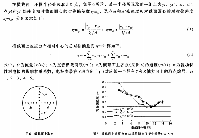 根據計算結果分析,盡管直管上并沒有速度完全中心軸對稱(速度總對稱偏差度為0)的用于安裝電磁流量計的理想位置,但是由于sym*小值較小,且延長直管長度后sym*小值變化很小,因此可以認為,在設計800mm內徑電磁流量計測量管路時,直管長度取12m可滿足電磁流量計的安裝和測量要求,但考慮到電磁流量計本身的長度,直管長度應在12m的基礎上適當加長。