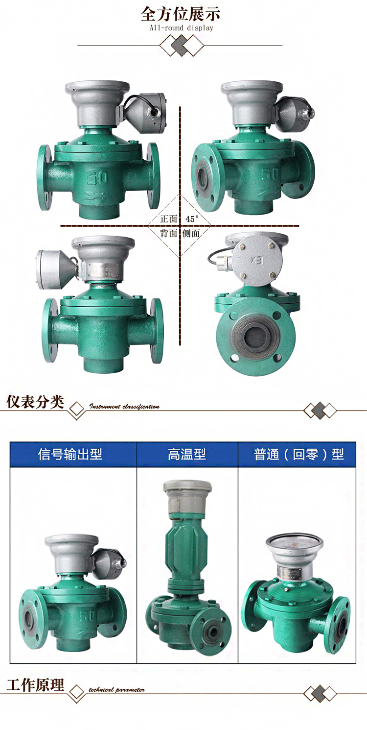 CH-LC型橢圓齒輪流量計是液體在流量計種流動,在進出口兩端會形成差壓,在流量計種的橢圓齒輪在軸上不停的旋轉,齒輪間的空隙將充滿液體,液體隨齒輪的旋轉被排出,齒輪的轉數和流量值成正比關系,測出橢圓齒輪的轉數即可得到流量值。