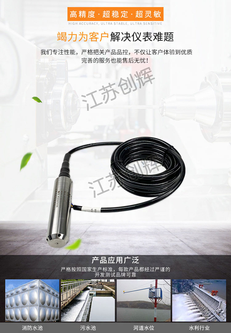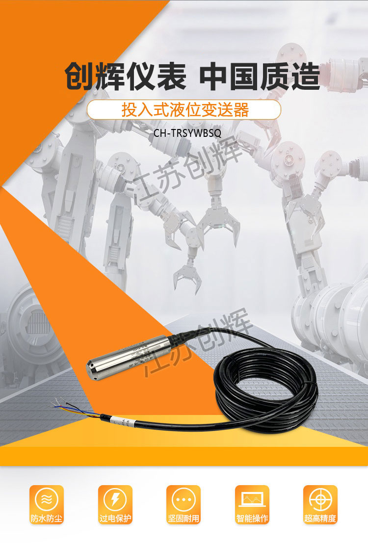 CH-TRSF系列防腐投入式液位變送器適用于石油化工、冶金、電力、制藥、供排水、環(huán)保等系統(tǒng)和行業(yè)的各種介質(zhì)的液位測(cè)量。精巧的結(jié)構(gòu),簡(jiǎn)單的調(diào)校和靈活的安裝方式為用戶輕松地使用提供了方便。4~20mA、0~5v、 0~10mA等標(biāo)準(zhǔn)信號(hào)輸出方式由用戶根據(jù)需要任選。
